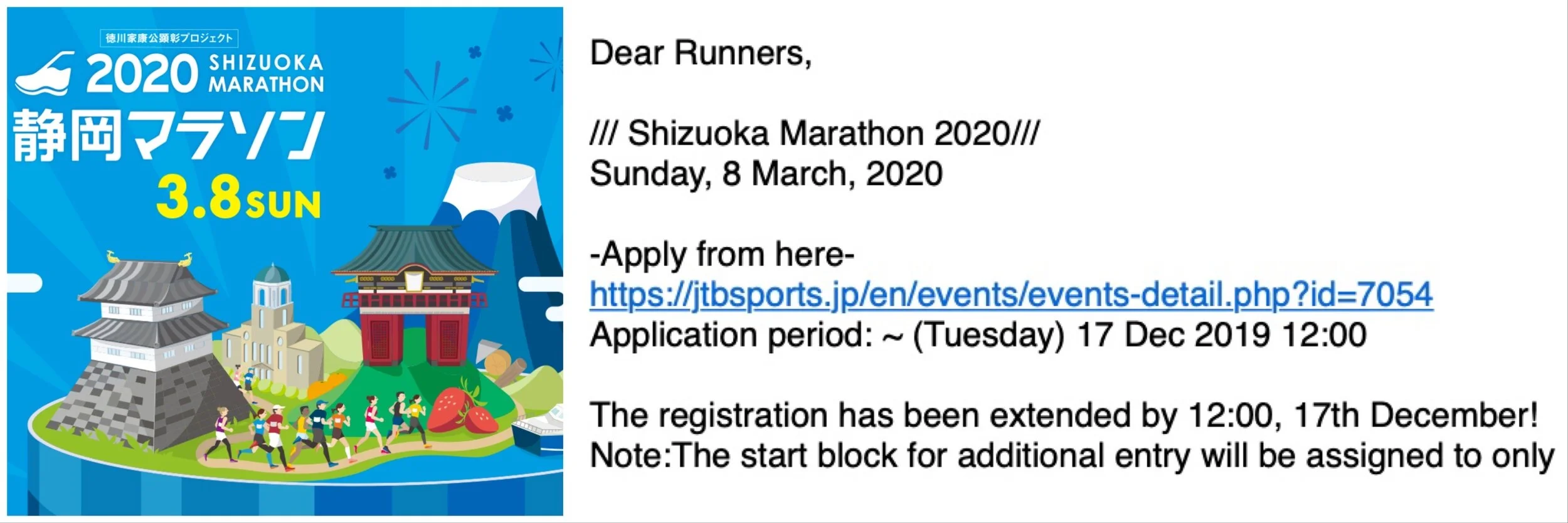 /One month before I even went to Osaka, I was already planning my next marathoning goals for 2020. Somehow I couldn’t decide when and where I should run next, and then, as it happens sometimes, I found the answer in one of my emails - ‘Shizuoka Marathon application period has been extended until 17th December’.